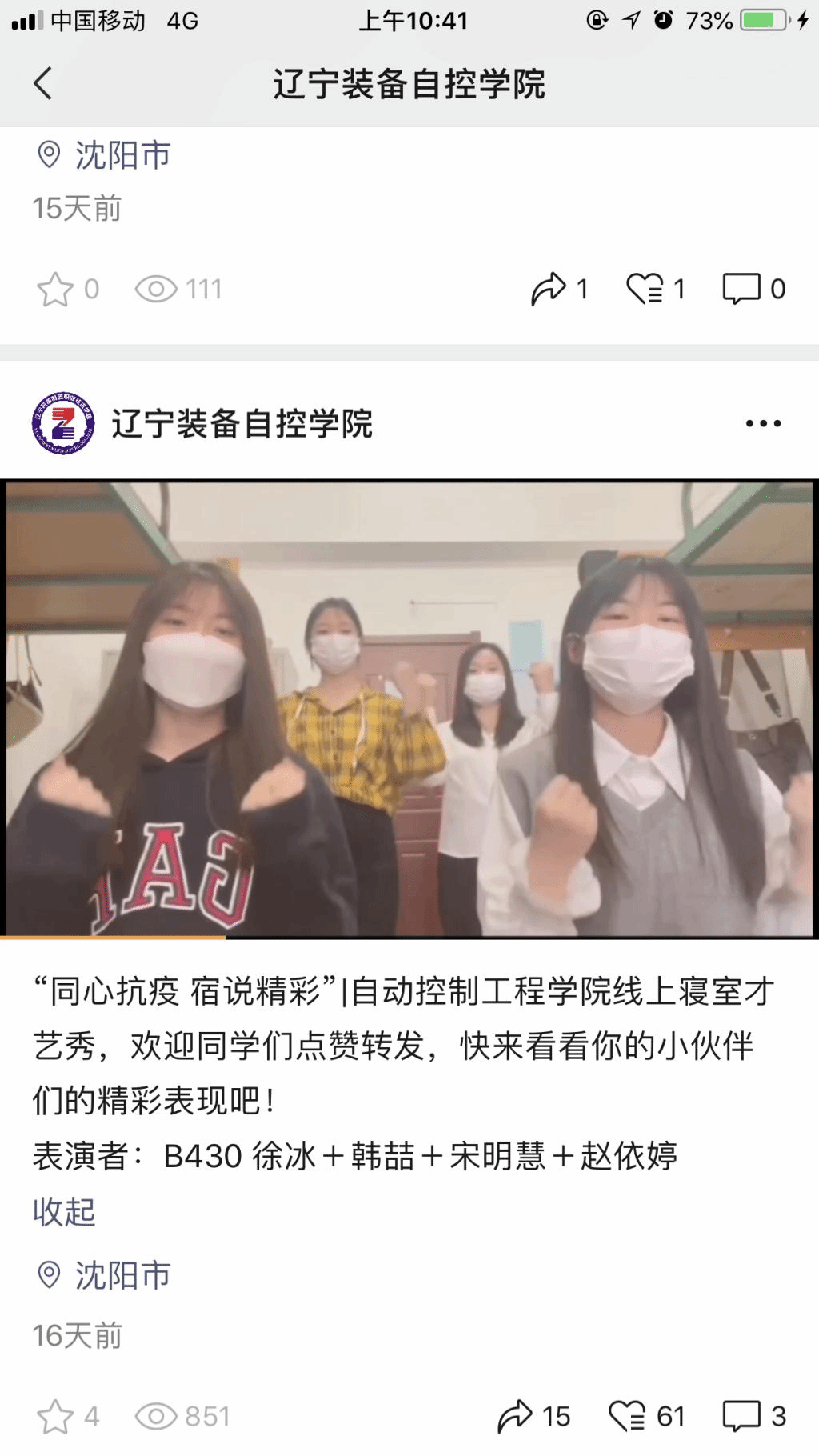 为丰富疫情防控期间学生们的课余生活,营造更加健康向上,乐观充实的校园氛围,自动控制工程学院分团委于3月24日至4月14日之间开展了“同心抗疫 宿说精彩”线上寝室才艺秀活动。