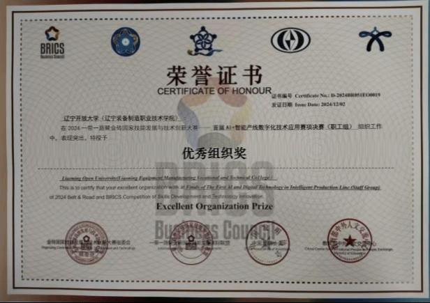2024年“一带一路”暨金砖国家技能发展与技术创新大赛 “首届AI+智能产线数字化技术应用赛项”总决赛于11月29日在辽宁锦州举行,来自76所中职、高职、本科院校教师与学生组成的158支队伍参加比赛。经过职业能力测试、虚拟仿真操作、AI智能产线实操三个环节的角逐,我院师生凭借着独到的创新思维、扎实的专业知识、精湛的实操技能、过硬的心理素质,最终23级机电一体化技术专业学生宋函峻、朱宝睿荣获学生组一等奖;施立群、刘童越两名教师荣获职工组二等奖的好成绩。